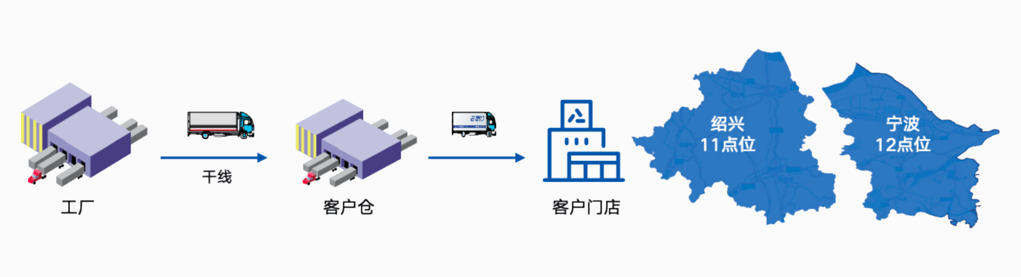- The customer’s warehouse is located in Shaoxing, with the urban distribution scope covering Shaoxing and Ningbo. But the distribution nodes are scattered, and the on-time delivery satisfaction rate is low.