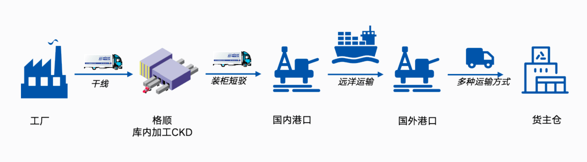 - The customer entrusts GSL to provide full-link logistics services, including CKD operations, international transportation, customs declaration, and customs clearance. The warehouse unpacks, labels, and repack-ages goods according to customer orders, palletizes them according to international transportation standards, and makes long-term planned booking based on customer shipping plans. This helps custom-ers reduce costs and increase efficiency, with packaging costs reduced by 23% and transportation costs reduced by 15%.